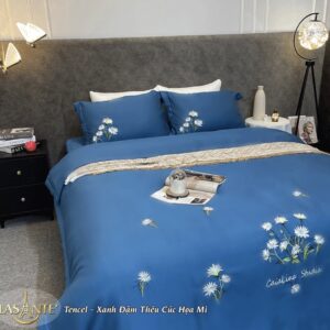 Đặc tính của Bộ Chăn Ga Lasante Vải Tencel – Xanh Đậm Thêu Cúc Họa Mi